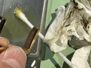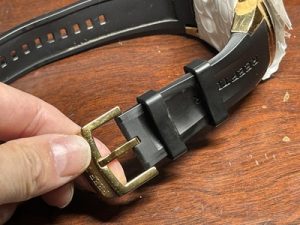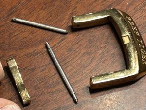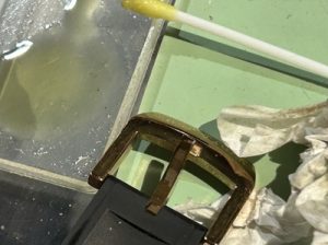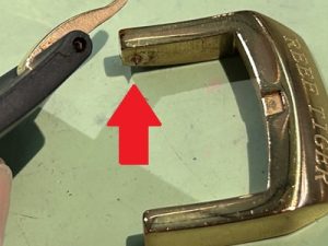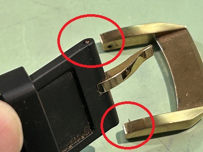 よく使う尾錠部分。錆でバネ棒が腐食しています。