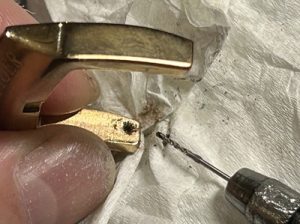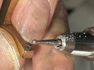 固まっているのでまずはダイヤバーにてほんの少し彫り込んでいきます。