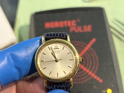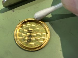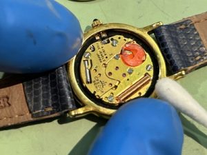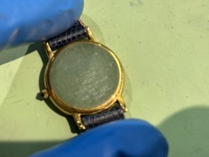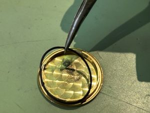 裏蓋を開くための溝を見つけ出し、専用の工具にて開きます。