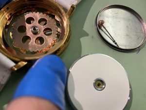 一度裏からムーブメントを取りだし修理を試みましょう。