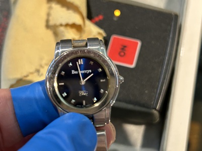 2針の腕時計…よく見てみないと動いているのか止まっているのか??”Burberry”