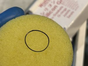正常動作も確認ができたところで裏蓋閉め。まずは、パッキンの状態を確認し…