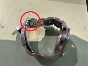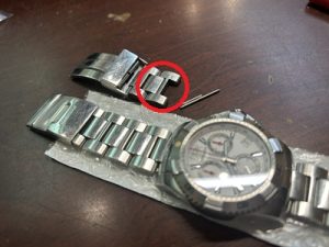 元のピンよりもほんの小さいドリルにて貫通。”Longines”