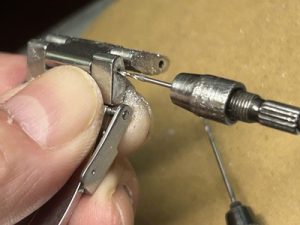 どうしても、一コマ取りたいとのことで、ご提案として極細ドリルにて錆で固まったpinを削り取り修正する案。
