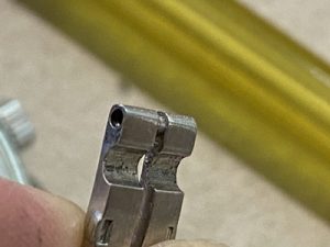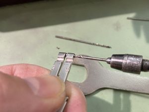 このままでは使えそう位に無いのでここの穴を修正し新しく芯棒を繋いでいきます。