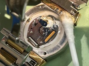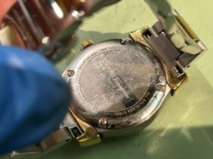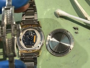 正常動作の確認後は、裏蓋のパッキン処理。”FERRAGAMO”