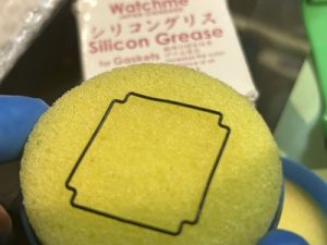 それを確認し、次は裏蓋のパッキンの状態チェック。