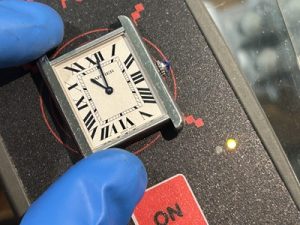 ムーブメントを固定台へ保護。