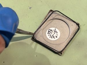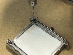 3本のネジは容易に取り除き、サビたネジをオイル沁み込ませながら極細ドリルにて削り落とし ようやく開くことが出来ました。