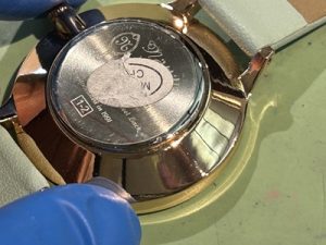 裏蓋の受け側の汚れを取り除き☟きっちりと裏蓋閉じ。