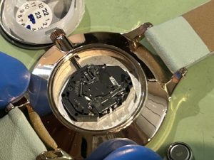 裏蓋はポコタイプ、構造を確認しながらの作業です。