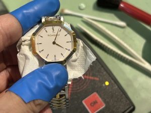 ずっと使ってなく止まったままの腕時計でしたが、お嬢様が使いたいとのことでお持ちくださいました。