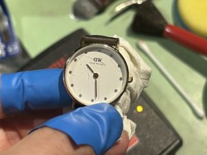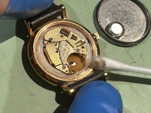 時計も止まってしまったこともあり、電池交換とベルト交換で進めて行きます。