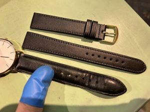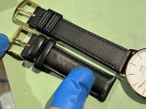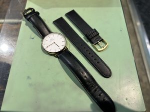 日ごろからよく使っているせいか、ベルトもクタクタ。”Daniel Wellington”