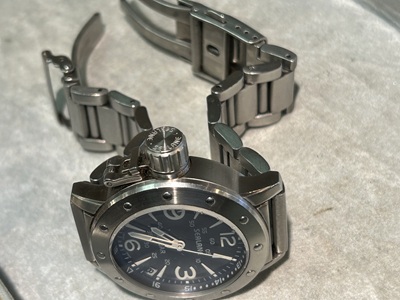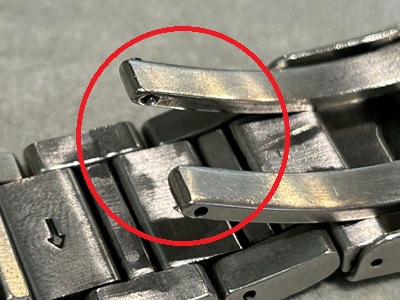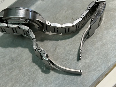 腕時計のベルト部分…折りたたむ金具のつなぎピンが損傷しだらりと…”SEALANE”