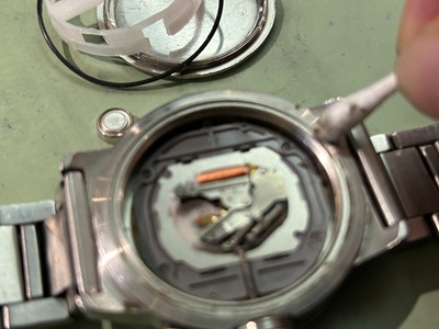 裏蓋を開いた時にしかここのお掃除はできないですから、しっかりと汚れ取り。🫡