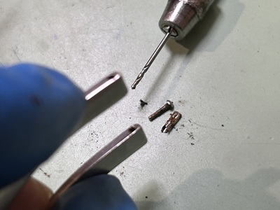 さびで固着していましたが、極細、細ドリルで軸穴をきれいにお掃除。