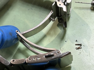 新しい電池を交換後、正常動作の確認もできたので次はメインのバックルのお直しです。