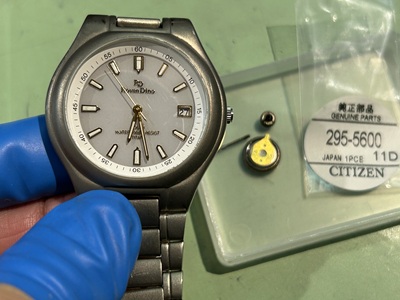 内部のお掃除…そして、竜頭の芯、ソーラー電池も交換し動作確認…。