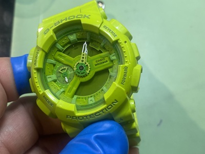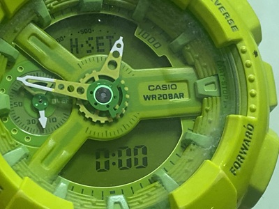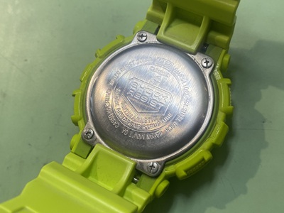 なんともおしゃれなカラーですね。。文字盤面、液晶もライトグリーンでしたが、電池切れ…”G-SHOCK”