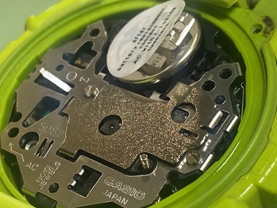 新しい電池を挿入後、ショートさせ時刻合わせ。
