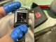 電池の交換はちとばかしお時間をいただいて進めて行きます。ご覧の通り裏蓋を上下のベルトが押さえている構造。一度片方のベルトを取り外しての作業です。