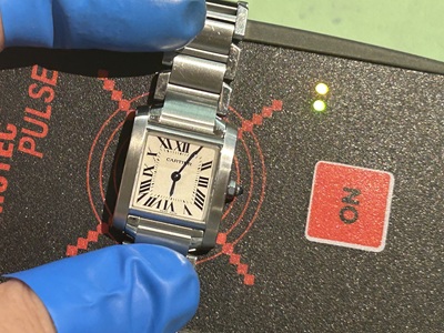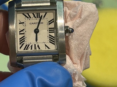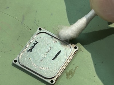 まずは裏蓋を開き汚れが内部に入り込まないよう綿棒でお掃除から!