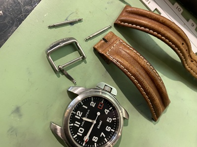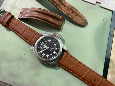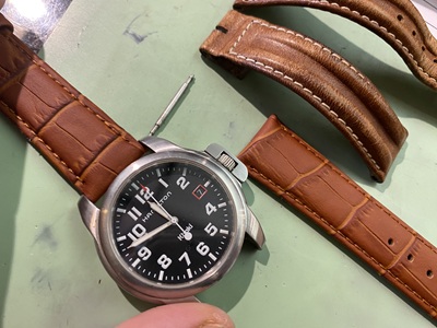 キャメル。バネ棒の状態を確認し、12時側、6時側としっかりを取付確認!